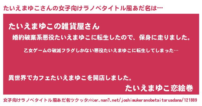 | 意味不明あだ名 | 『住所不定無職たいえまゆこ(39歳)』 |