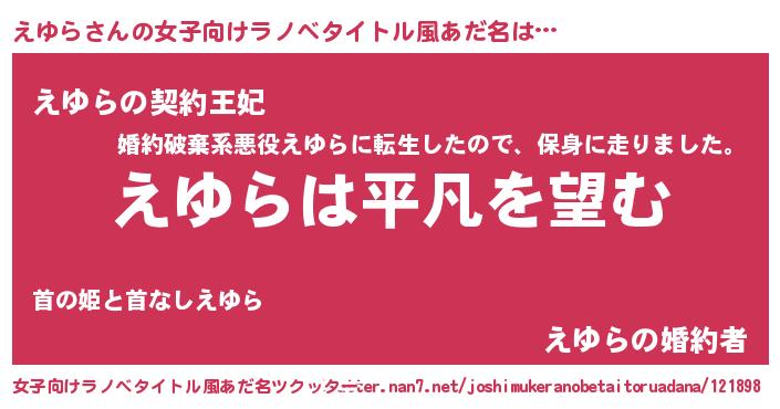 | 男性向けラノベタイトル風あだ名 | 『ダンジョンにえゆらを求めるのは間違っているだろうか』 |