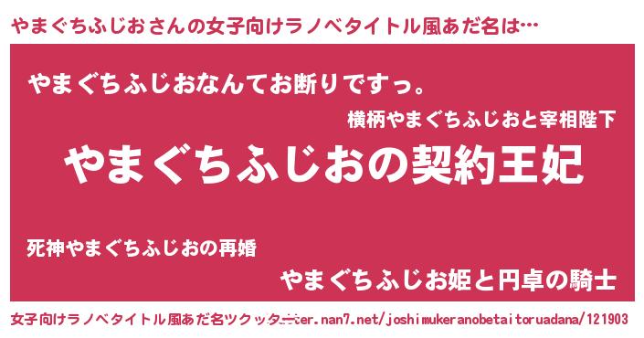 | 胡散臭い通販商品みたいなあだ名 | 『来世でも幸せになれる健康食品…その名も「やまぐちふじお」』 |