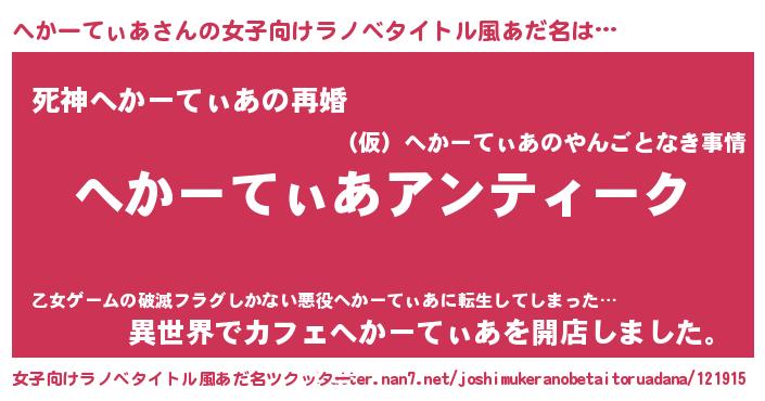 | 男性向けラノベタイトル風あだ名 | 『魔法科高校のへかーてぃあ』 |