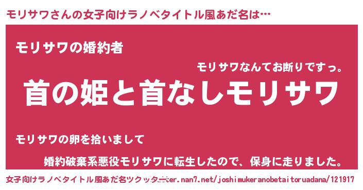 | ヒーロー風カッコイイあだ名 | 『ウルトラモリサワマン』『暗黒騎士モリ』 |