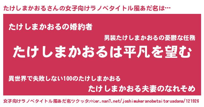 | 男性向けラノベタイトル風あだ名 | 『ダンジョンにたけしまかおるを求めるのは間違っているだろうか』 |