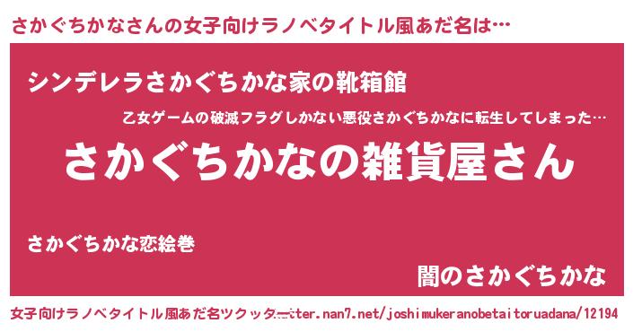 | 胡散臭い通販商品みたいなあだ名 | 『幸せが訪れる高級そうな絵画…その名も「さかぐちかな」』 |