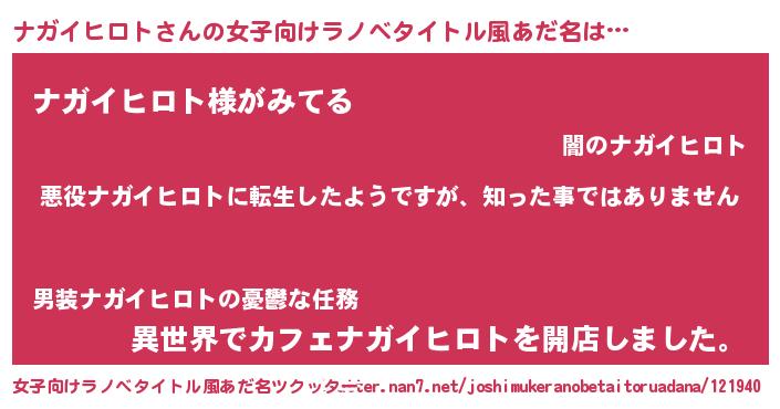 | 男性向けラノベタイトル風あだ名 | 『この素晴らしい世界にナガイヒロトを!』 |