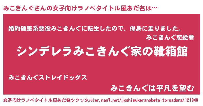 | ヒーロー風カッコイイあだ名 | 『暗黒騎士ミコ』『愛の使者みこきんぐ』 |