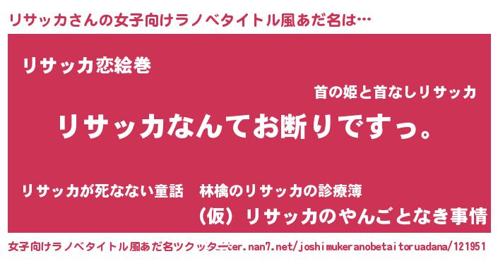 | 男性向けラノベタイトル風あだ名 | 『魔法科高校のリサッカ』 |