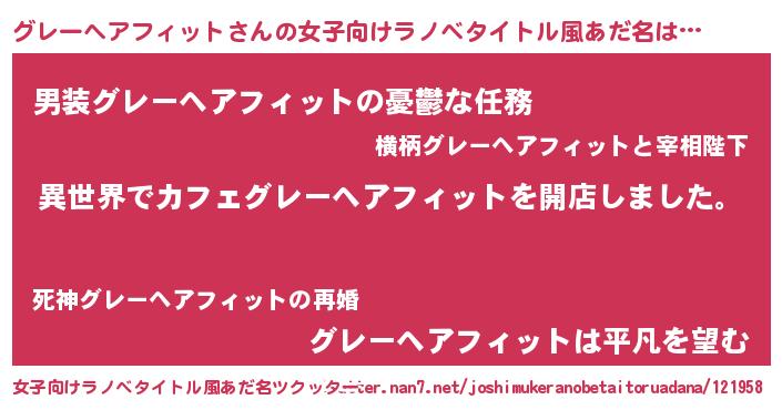 | 男性向けラノベタイトル風あだ名 | 『誰もが恐れるあのグレーヘアフィットが、ぼくの専属メイドになるようです。』 |