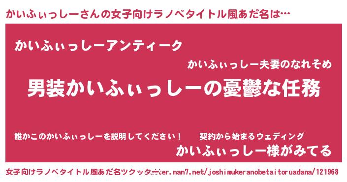 | 男性向けラノベタイトル風あだ名 | 『うちのかいふぃっしーが世界を掌握している!』 |