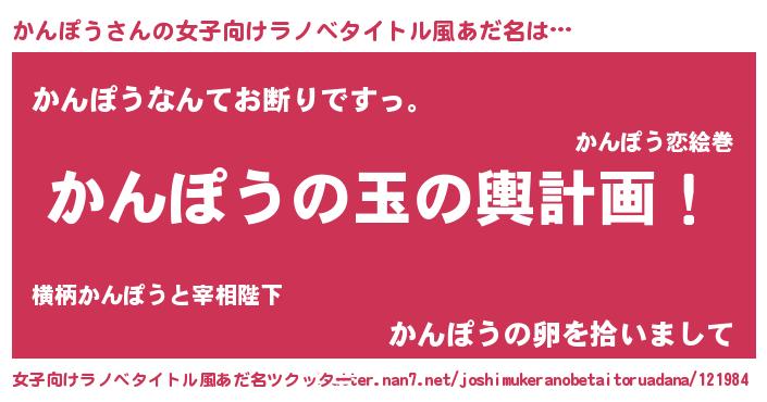 | 胡散臭い通販商品みたいなあだ名 | 『テレビで話題のアガリクス…その名も「かんぽう」』 |