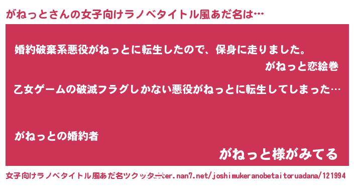 | 男性向けラノベタイトル風あだ名 | 『この素晴らしい世界にがねっとを!』 |