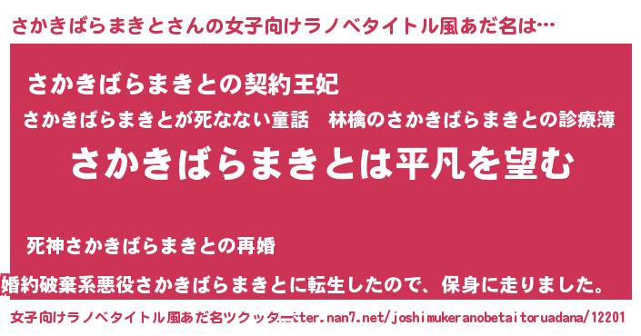 | 男性向けラノベタイトル風あだ名 | 『ダンジョンにさかきばらまきとを求めるのは間違っているだろうか』 |