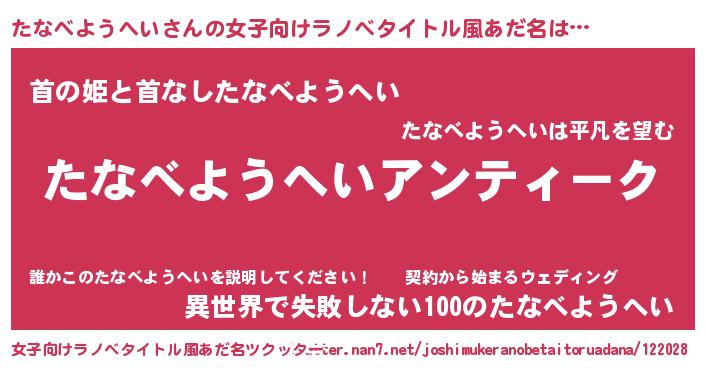 | 男性向けラノベタイトル風あだ名 | 『魔法科高校のたなべようへい』 |