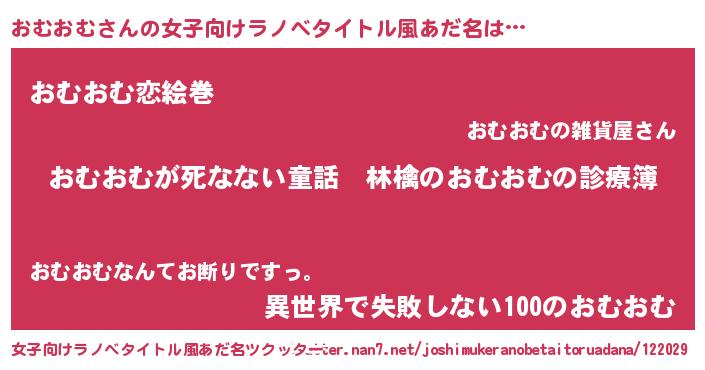 | 男性向けラノベタイトル風あだ名 | 『魔弾の王とおむおむ』 |