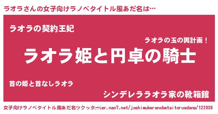 | ファンタジー風あだ名 | 『ラオフェル』『ラオディッシュ』 |