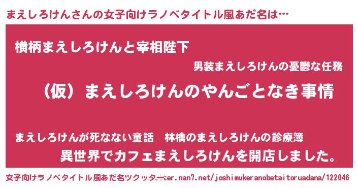 | 男性向けラノベタイトル風あだ名 | 『まえしろけんの憂鬱』 |