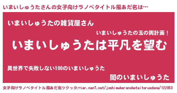 | 男性向けラノベタイトル風あだ名 | 『ダンジョンにいまいしゅうたを求めるのは間違っているだろうか』 |