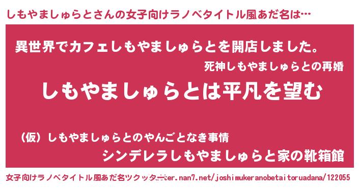 | 意味不明あだ名 | 『とにかく怪しいしもやましゅらと』 |