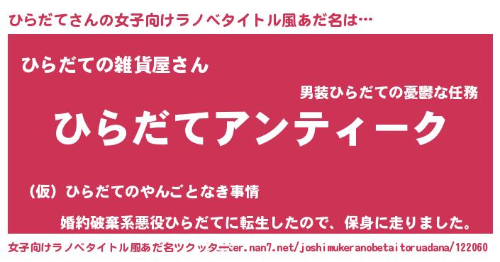 | 意味不明あだ名 | 『自称ひらだて』『ひらだてフォーエバー』 |