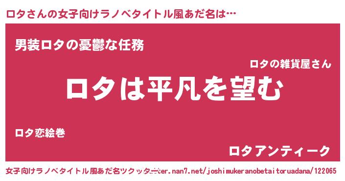 | ヘコむあだ名 | 『ロタお』『豆乳』『ロタ(遠い目)』 |