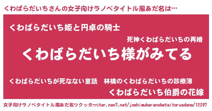| 意味不明あだ名 | 『とにかく怪しいくわばらだいち』 |