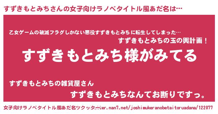 | 男性向けラノベタイトル風あだ名 | 『すずきもとみちの嫁は女の子じゃないと思った?』 |