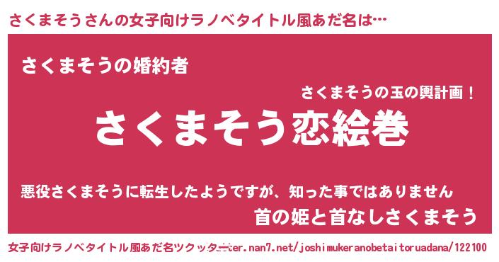 | 男性向けラノベタイトル風あだ名 | 『ノーゲーム・ノーサクマソウ』 |