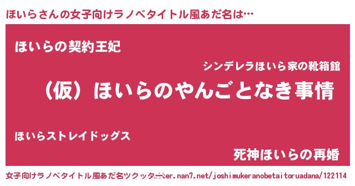 | ヘコむあだ名 | 『ほいふぇ~』『ほいら(笑)』 |