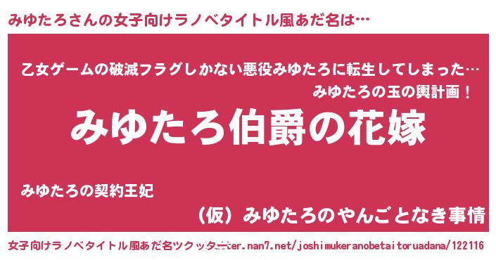 | 欧米人風あだ名 | 『みゆたろクリステル』 |