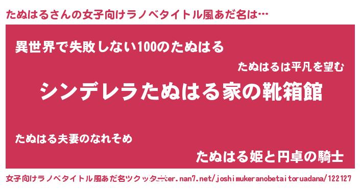 | 男性向けラノベタイトル風あだ名 | 『緋弾のタヌハル』 |