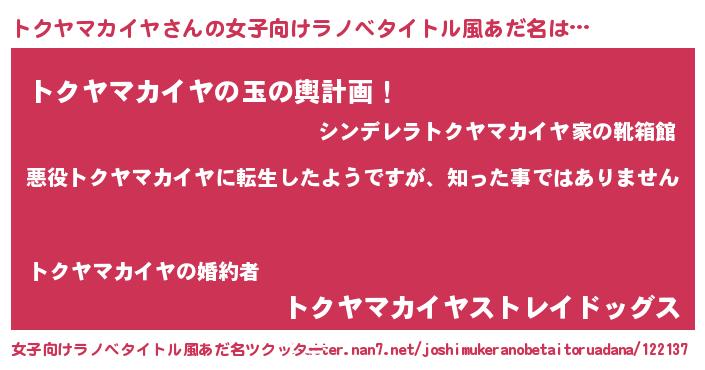 | 胡散臭い通販商品みたいなあだ名 | 『あなたにだけ特別に提供する100年もののヴィンテージワイン…その名も「トクヤマカイヤ」』 |