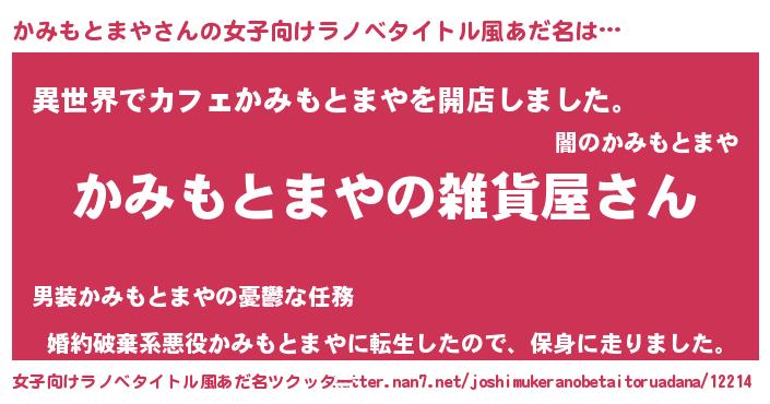 | 男性向けラノベタイトル風あだ名 | 『やはりかみもとまやの青春ラブコメはまちがっている 』 |