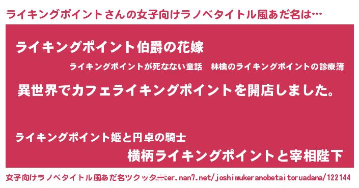 | 意味不明あだ名 | 『永久保存ライキングポイント』 |