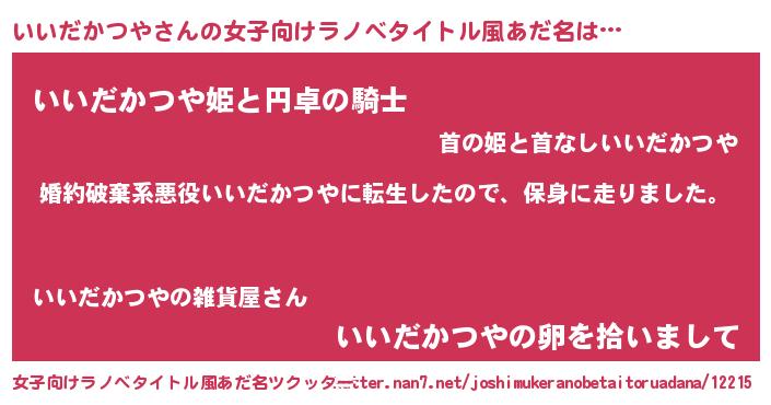 | 胡散臭い通販商品みたいなあだ名 | 『必ず成功するブレスレット…その名も「いいだかつや」』 |