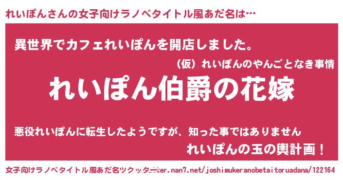 | ファンタジー風あだ名 | 『エターナルレイポンー』『レイフェル』 |