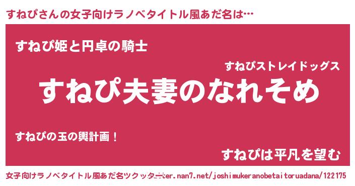 | 男性向けラノベタイトル風あだ名 | 『おまえをオタクにしてやるから、俺をすねぴにしてくれ! 』 |