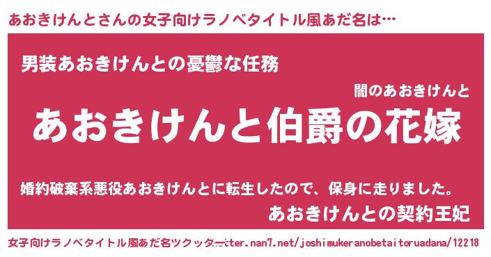 | 意味不明あだ名 | 『あおきけんとフォーエバー』 |