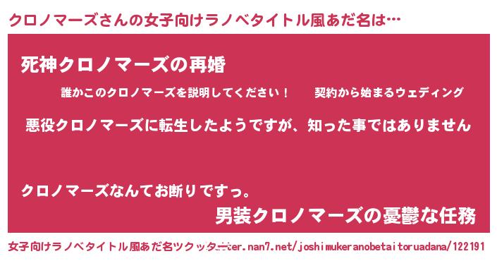 | 男性向けラノベタイトル風あだ名 | 『この素晴らしい世界にクロノマーズを!』 |