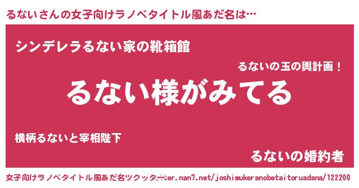 | 男性向けラノベタイトル風あだ名 | 『るないの嫁は女の子じゃないと思った?』 |