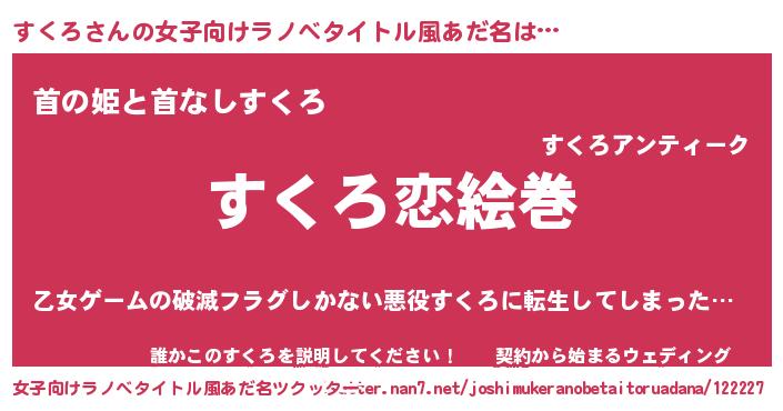 | 男性向けラノベタイトル風あだ名 | 『ノーゲーム・ノースクロ』 |