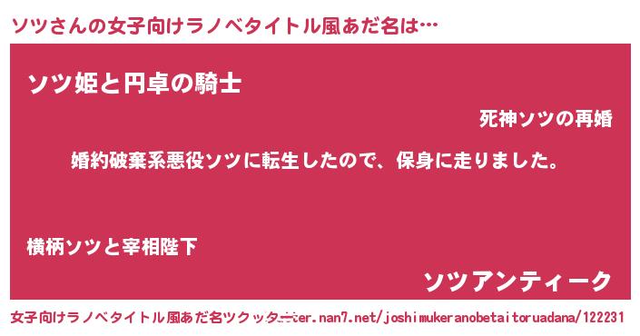 | 胡散臭い通販商品みたいなあだ名 | 『必ず成功する水晶球…その名も「ソツ」』 |