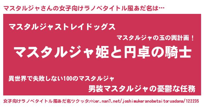 | 男性向けラノベタイトル風あだ名 | 『マスタルジャアートオンライン』 |