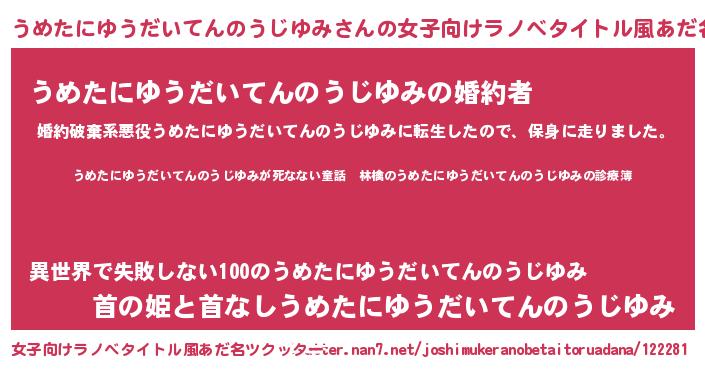 | 意味不明あだ名 | 『住所不定無職うめたにゆうだいてんのうじゆみ(12歳)』 |