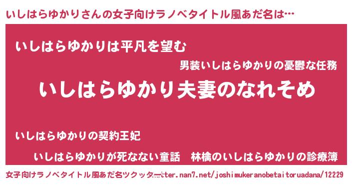 | 男性向けラノベタイトル風あだ名 | 『おまえをオタクにしてやるから、俺をいしはらゆかりにしてくれ! 』 |