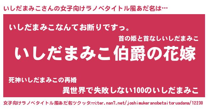 | 男性向けラノベタイトル風あだ名 | 『やはりいしだまみこの青春ラブコメはまちがっている 』 |