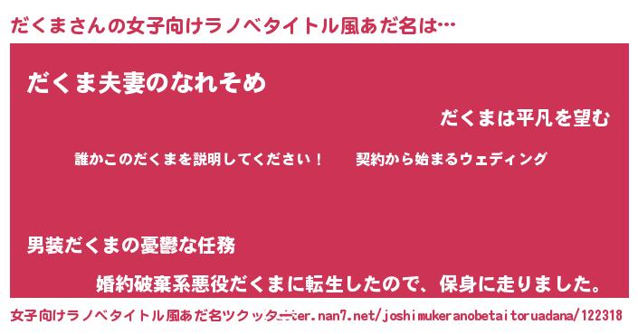 | 胡散臭い通販商品みたいなあだ名 | 『億万長者になれる水晶球…その名も「だくま」』 |