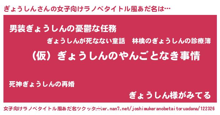 | 男性向けラノベタイトル風あだ名 | 『ぎょうしんの憂鬱』 |