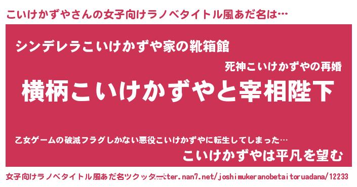 | 男性向けラノベタイトル風あだ名 | 『こいけかずやに滅ぼされるだけの簡単なお仕事です』 |
