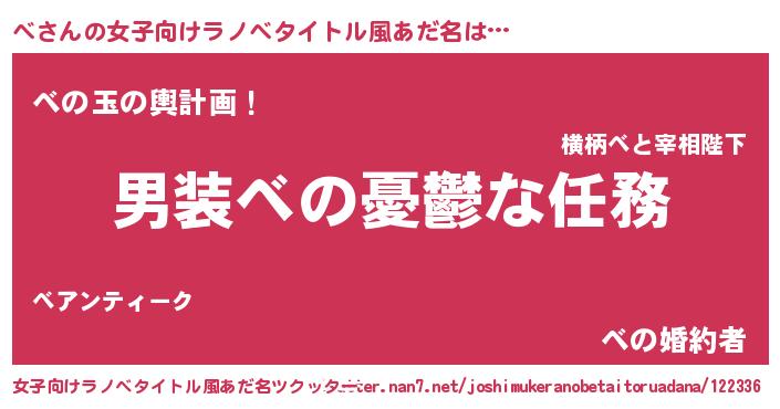 | 男性向けラノベタイトル風あだ名 | 『うちのベが世界を掌握している!』 |