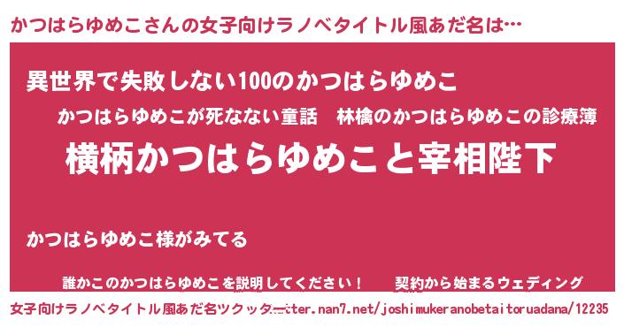 | 男性向けラノベタイトル風あだ名 | 『かつはらゆめこに滅ぼされるだけの簡単なお仕事です』 |