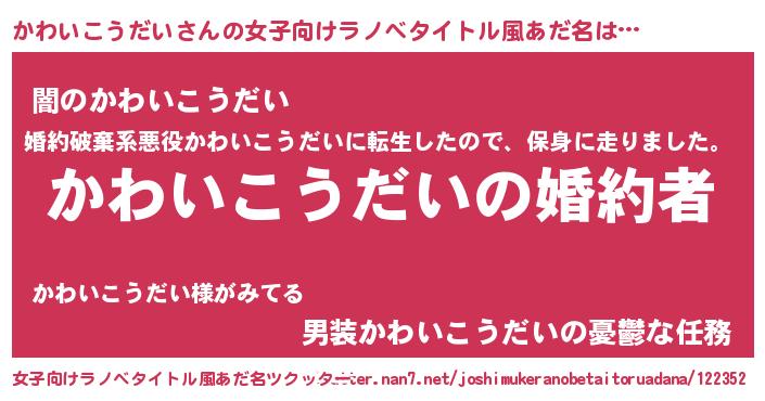| ファンタジー風あだ名 | 『エターナルカワイコウダイー』 |